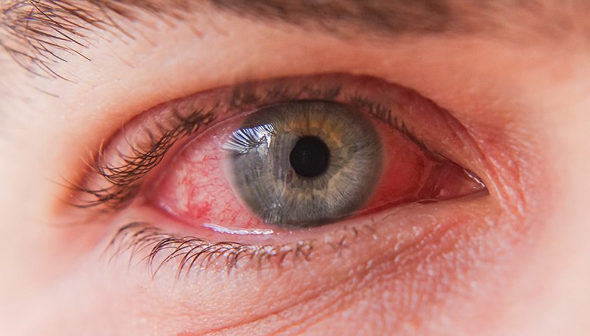 Конъюнктивит, вызванный воздействием отравляющих и химических веществ, сопровождается раздражением и болями в глазу.