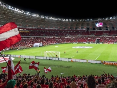 Комментировали мы на стадионе «Фишт» в зоне прессы. Это места с хорошим обзором сцены и всего стадиона. Кабинок у нас не было, поэтому звук самого представления попадал в микрофон, но по отзывам это не сильно мешало восприятию комментария.
