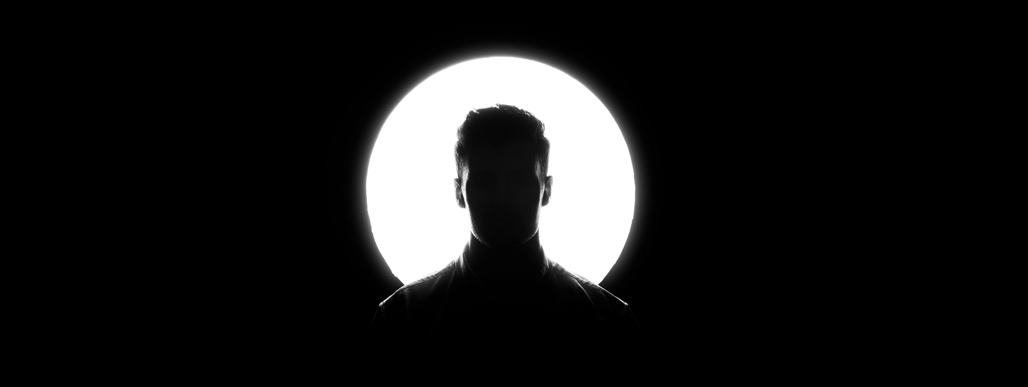 Тифлокомментарий: цветная фотография. Солнечный свет падает на каменные столбы в темном помещении. На одном из них — тень мужчины. Он стоит, скрестив ноги, руку держит в кармане.