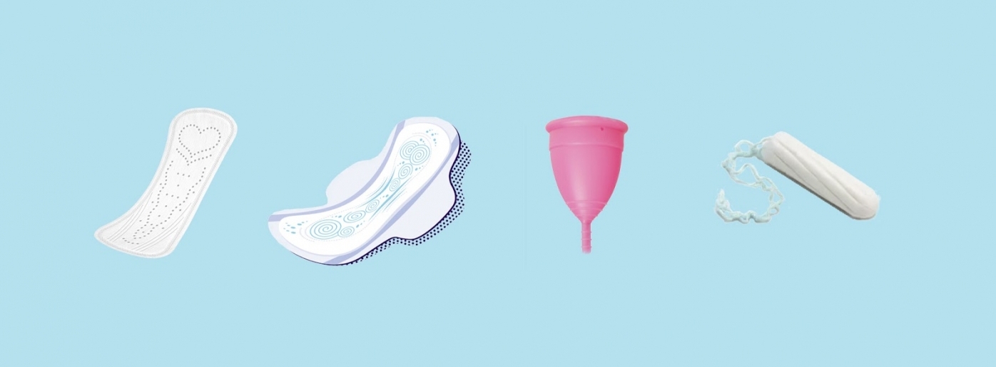 гигиеническими одноразовыми прокладками (толстые, тонкие, с «крылышками» и без них);