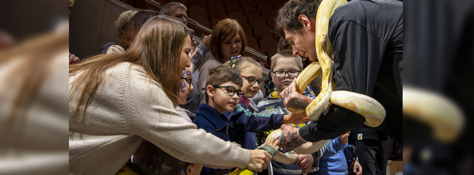 В шоу в Туле приняли участие более 50 видов животных, в том числе еноты, верблюды, ламы, пони, болонки, бобтейлы, удавы и крокодилы. Звездой представления стала бегемотиха Юлиана весом 2,5 тонны.