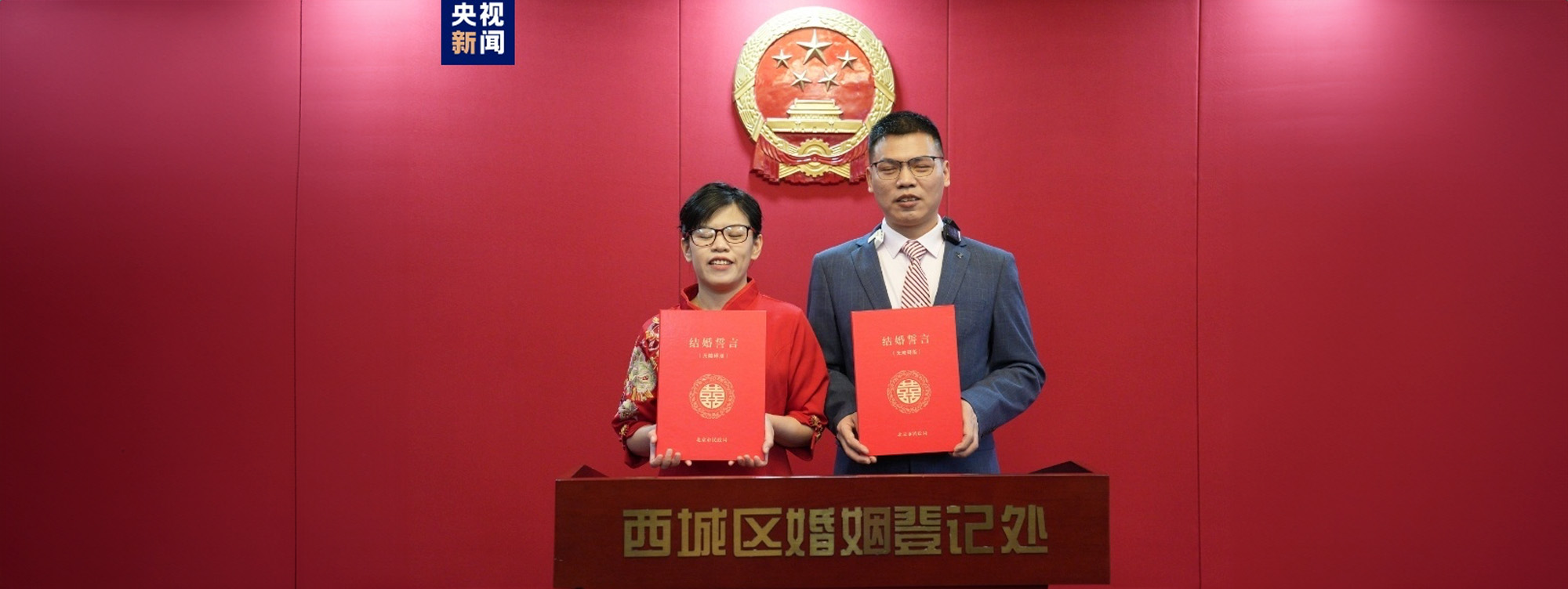 В Пекине незрячая пара заключила брак и получила свидетельства о браке и брачные клятвы, напечатанные шрифтом Брайля, пишет China Daily.