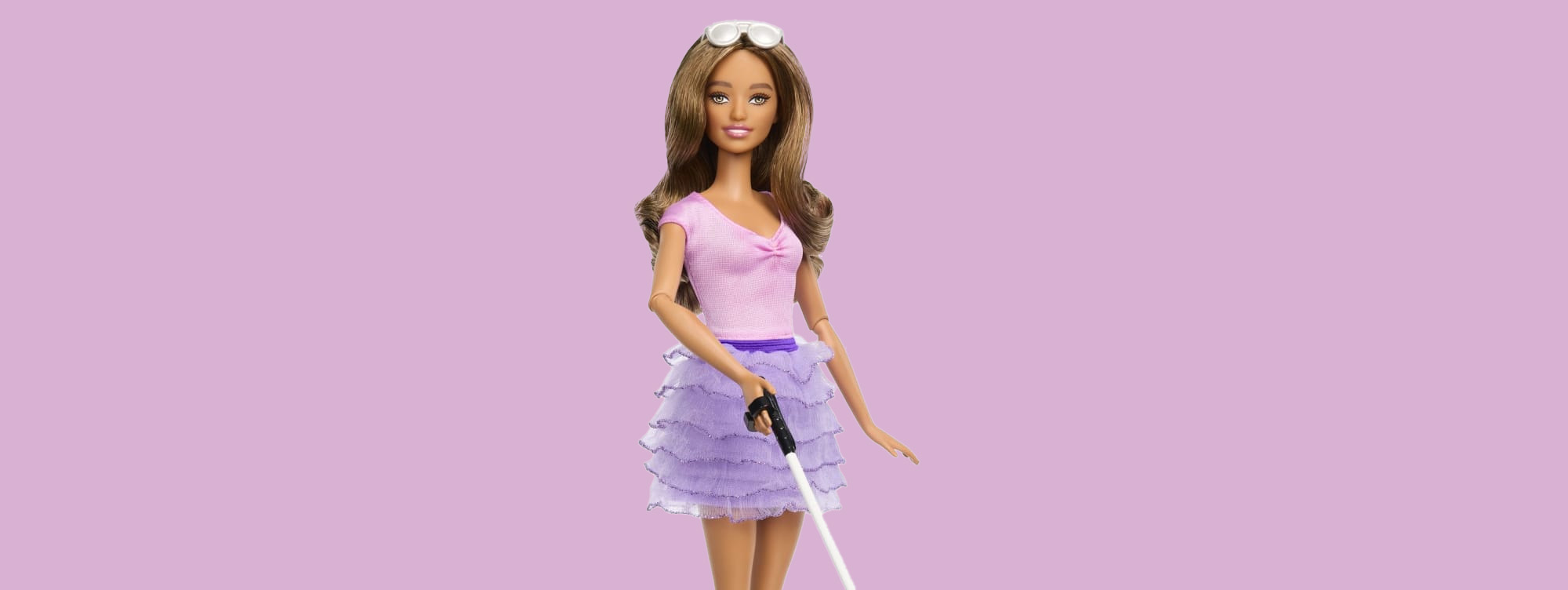 Компания Mattel, производитель Барби, представила «незрячую» куклу с очками и белой тростью.