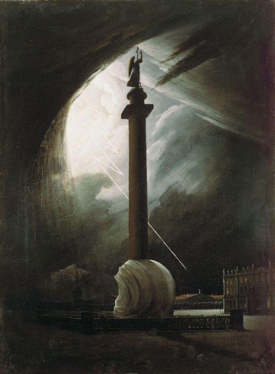Василий Раев. Александровская колонна во время грозы. 1834