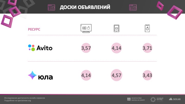 «Юла». Высокая доступность сайта и мобильного приложения на Android. Средняя доступность мобильного приложения на iOS.