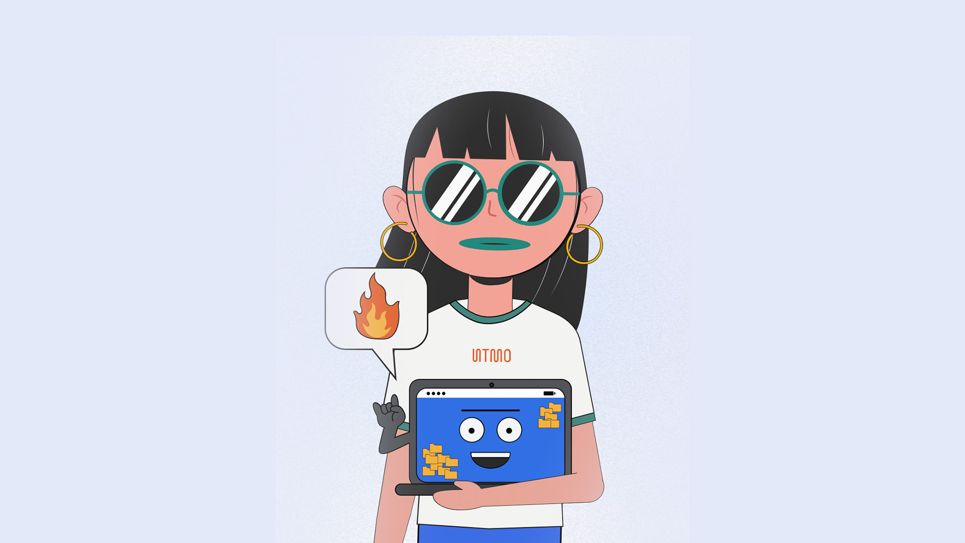 Тифлокомментарий: цветная иллюстрация. Девушка с длинными темными волосами и челкой в темных очках. У нее зеленая помада, в ушах — золотые серьги-кольца. Девушка одета в белую футболку с надписью: «ИТМО». В руках держит раскрытый ноутбук, на экране которого изображена улыбающаяся рожица. У ноутбука есть рука, она указывает на всплывающий над монитором значок в виде пламени.