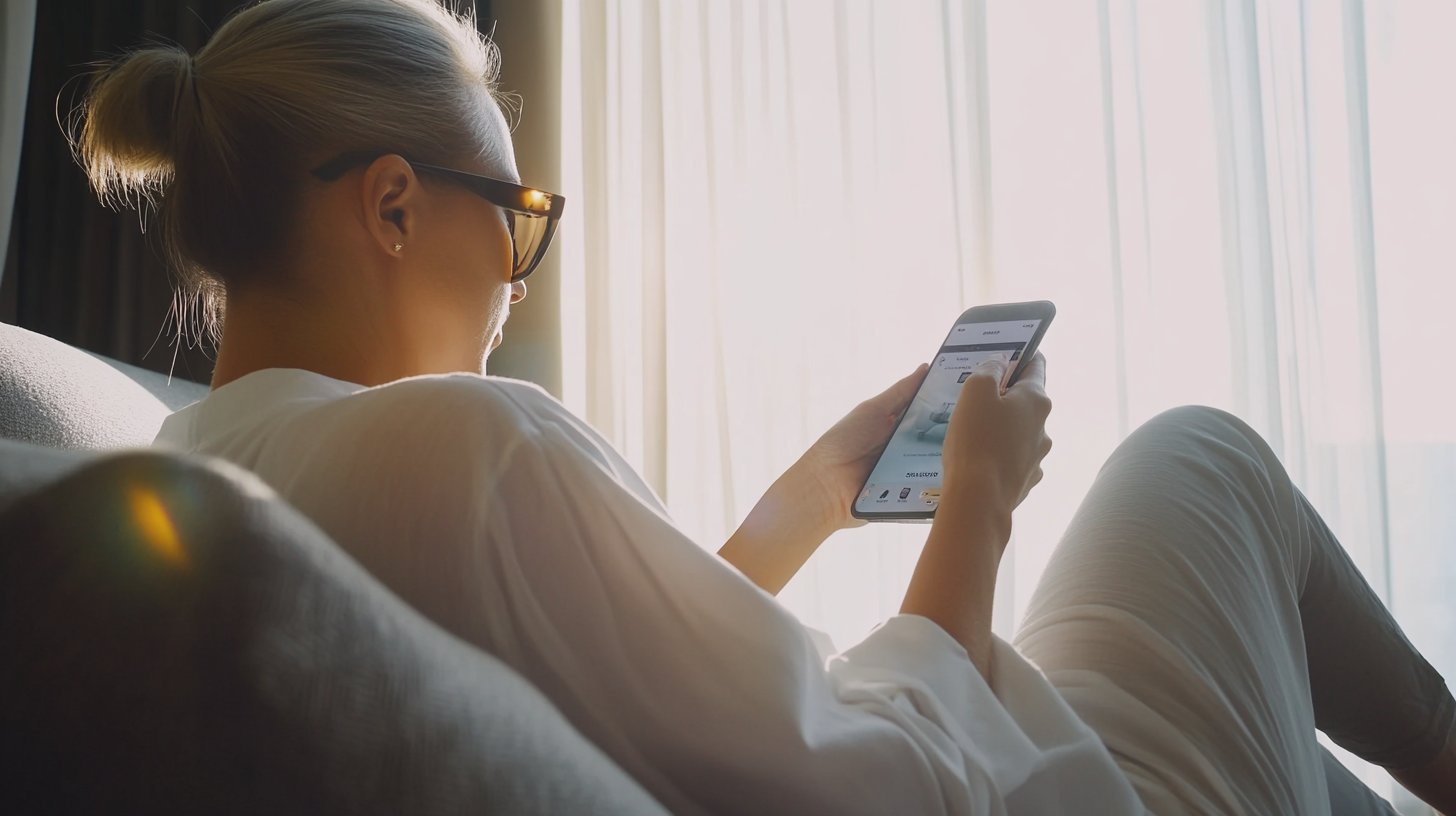Тифлокомментарий: цветная фотография. В светлой комнате пляшут солнечные блики. На диване, лицом к занавешенному тюлем окну, полулежит девушка в тонкой белой блузке, белых брюках и очках в крупной оправе. Ее светлые волосы собраны в хвост на затылке. Девушка держит перед собой смартфон, изучает иллюстрацию и текст под ней.