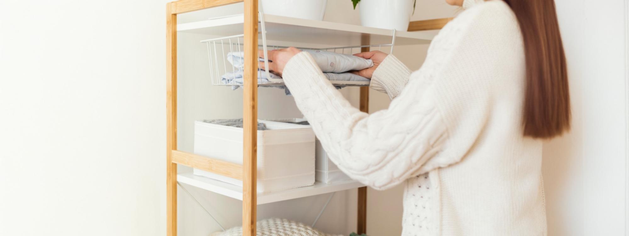 Говоря про малые пространства, такие как полки, стоит отметить, что для удобства лучше не загромождать их. Все ненужные или редко используемые вещи можно убрать подальше.