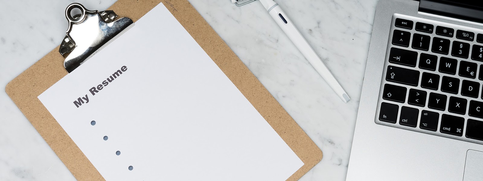 Тифлокомментарий: цветная фотография. На белом покрывале стоит открытый ноутбук с клавиатурой на латинице. На ней лежит резюме на английском языке, на нем -— суккулент в маленьком горшке.