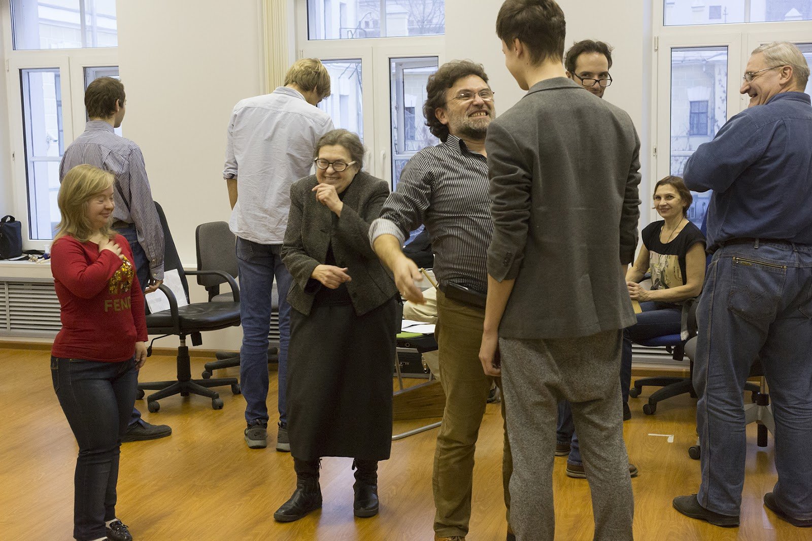 На фото: занятие педагога и режиссера Михаила Фейгина по актерскому мастерству в «Инклюзивной театральной лаборатории «Со-единение». Автор: Николай Германов