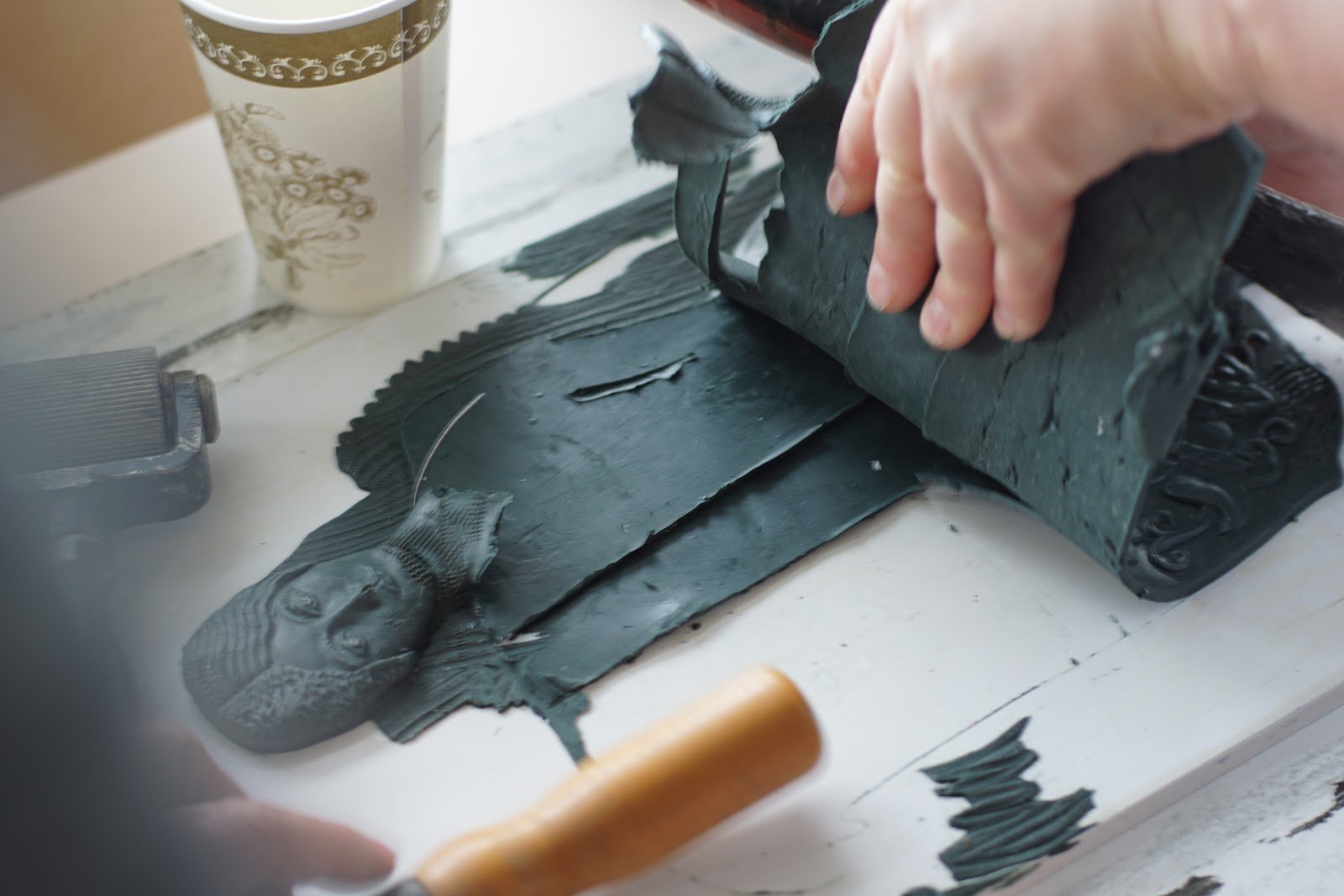 В последние минуты у кульмана я поучаствовала в разрушении готовой пластилиновой модели – мастер-модели. Ольга вручила мне широкий шпатель, и я буквально расчленила фигуру на кусочки. Было очень жалко, но так надо: пластилин послужит для создания новой работы.