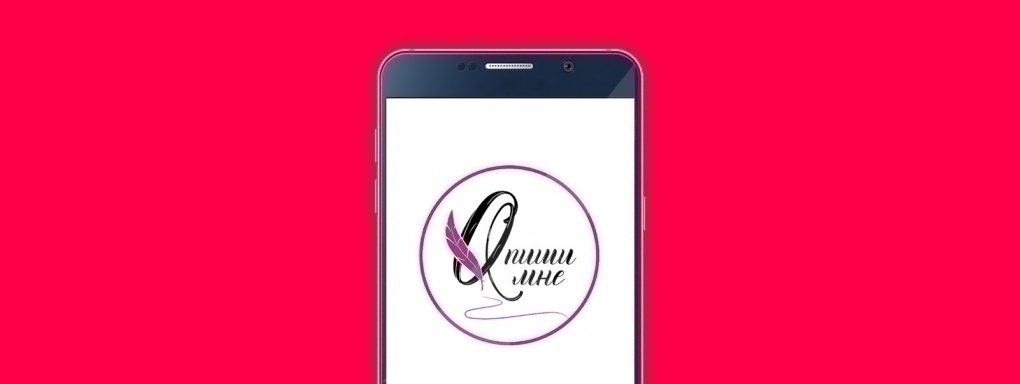 Тифлокомментарий: цветной коллаж на красном фоне. В центре включенный черный смартфон с логотипом на экране. На белом фоне в розовом круге надпись курсивом в две строчки: «Опиши мне». Буквица «О» в начале слова «Опиши» написана в старинном стиле: вчетверо больше других букв, с завитушками. На нее наложено изображение гусиного пера для письма розового цвета, под надписью росчерк пера — тонкая волнообразная розовая линия.