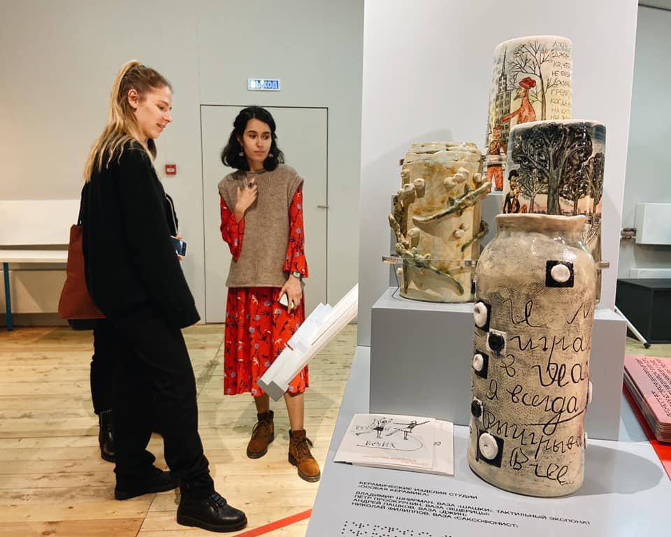 По словам Алены Левиной, которая сама имеет ограничения в передвижении, ей было важно, чтобы выставка была доступна для людей с разными формами инвалидности. И действительно чувствуется, что над доступностью команда поработала отлично — для слабовидящих и незрячих посетителей предусмотрен тифлоаудиогид и тактильные альбомы, созданные при участии программы поддержки людей с нарушением зрения «Особый взгляд». Все видеоролики сопровождаются тифлокомментариями и субтитрами для удобства незрячих, слабослышащих и глухих гостей. Беседа Виктора Паленного и Полины Синевой проходит на жестовом языке, поэтому специально для незрячих посетителей был сделан дубляж.