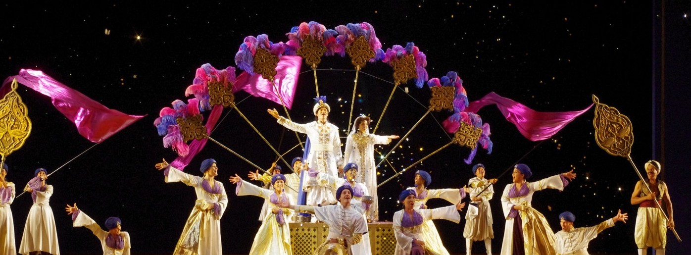 Тифлокомментарий: момент из спектакля. Сцена залита ярко-зеленым светом прожектора. На ней находятся 7 человек. На переднем плане молодой мужчина на инвалидной коляске. Он поднял руки и открыл рот. На нем черная футболка и серые штаны. Над ним висит обруч. На заднем плане сидят полукругом пять человек. Слева направо: девушка в очках, черной футболке и длинной черной юбке; мужчина средних лет с гитарой в руках и в белой одежде; мужчина на кресле-коляске за синтезатором и женщина средних лет за столиком с компьютером. Оба они в белом. Крайним справа сидит молодой мужчина с трубой на нем серая рубашка, серые брюки и красный галстук.