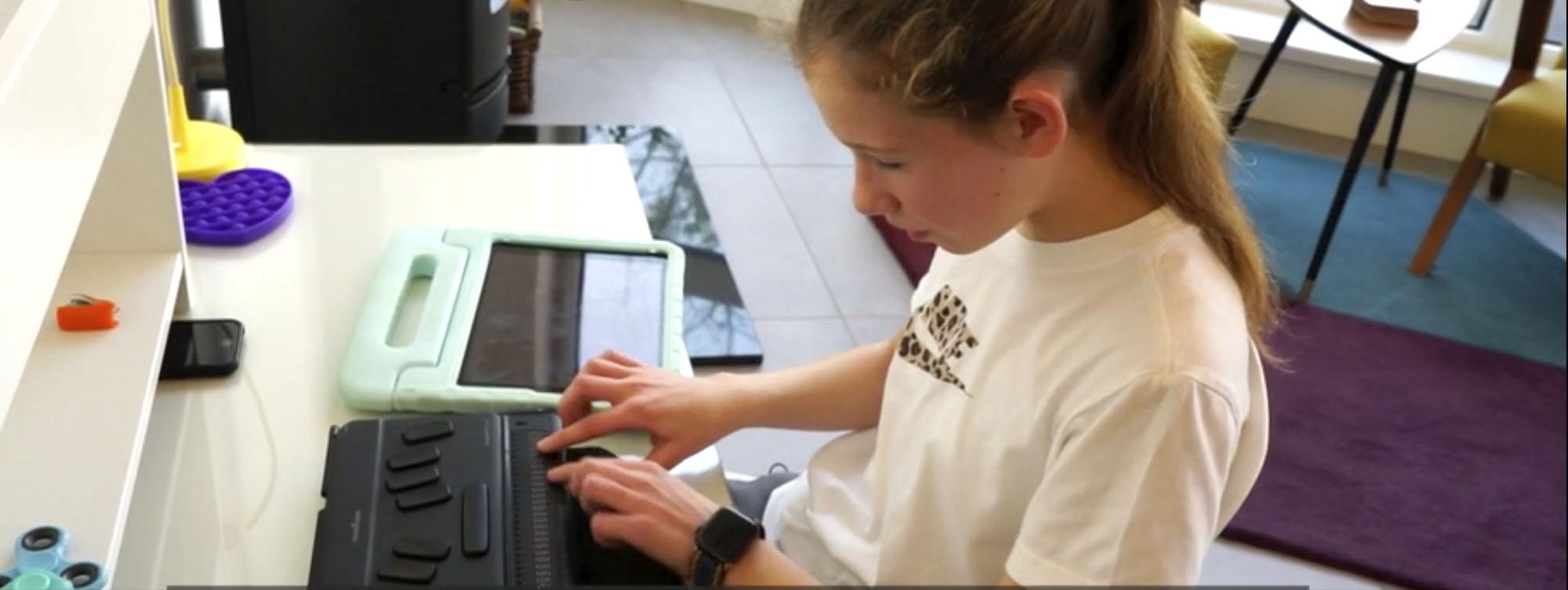 Научиться работать с планшетом девочке и ее родителям помогли в рамках программы Family Insight Project — проекта благотворительной организации Angel Eyes и Королевского национального института слепых.