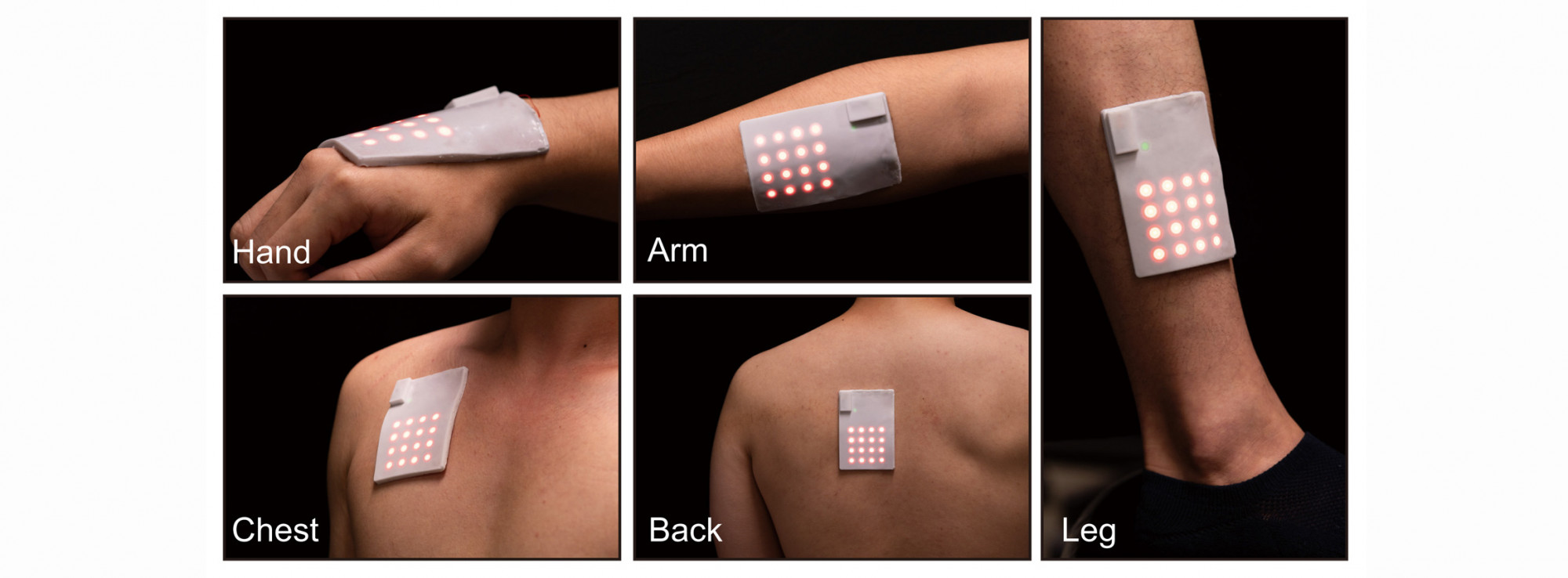 «Электронная кожа» представляет собой тонкую наклейку с сенсорами, которую можно надеть на руку. Устройство содержит 16 сенсоров, контроллер, Bluetooth-модуль.