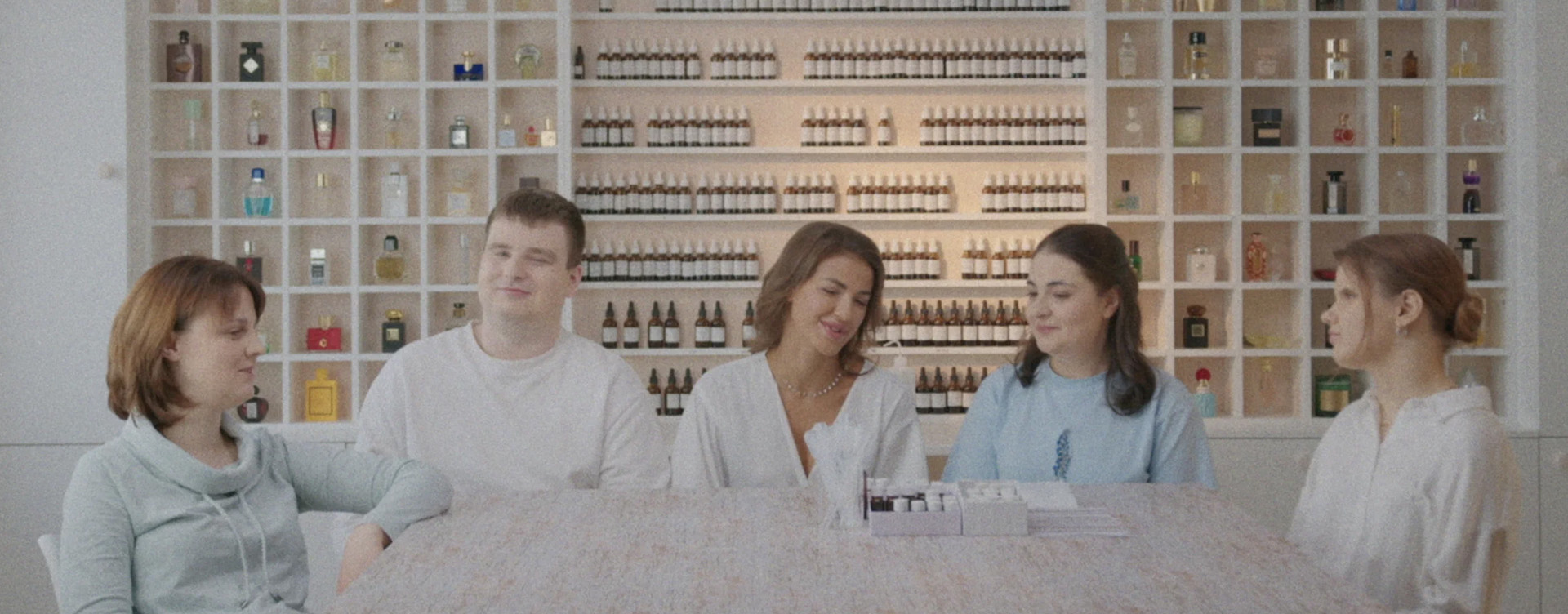 Зритель фильма наблюдает за тем, как парфюмеры трудятся над линейкой ароматов-состояний под названиями «Уверенность», «Нежность» и «Влюбленность». Разработанные героями ленты ароматы представят в коллекции селективного парфюмерного бренда Pure Sense.