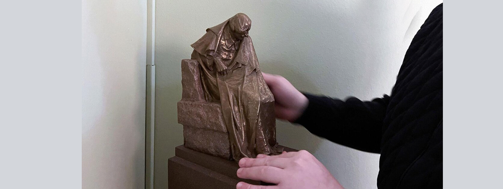 Копия памятника напечатана на 3D-принтере в мастерской Inclusive Division под руководством Юлии Андриевич и окрашена с имитацией оригинальных материалов — бронзы и гранита. Текст этикетки дублируется шрифтом Брайля. Гостям музея доступны также дополнительная информация об экспонате и тифлокомментарий.