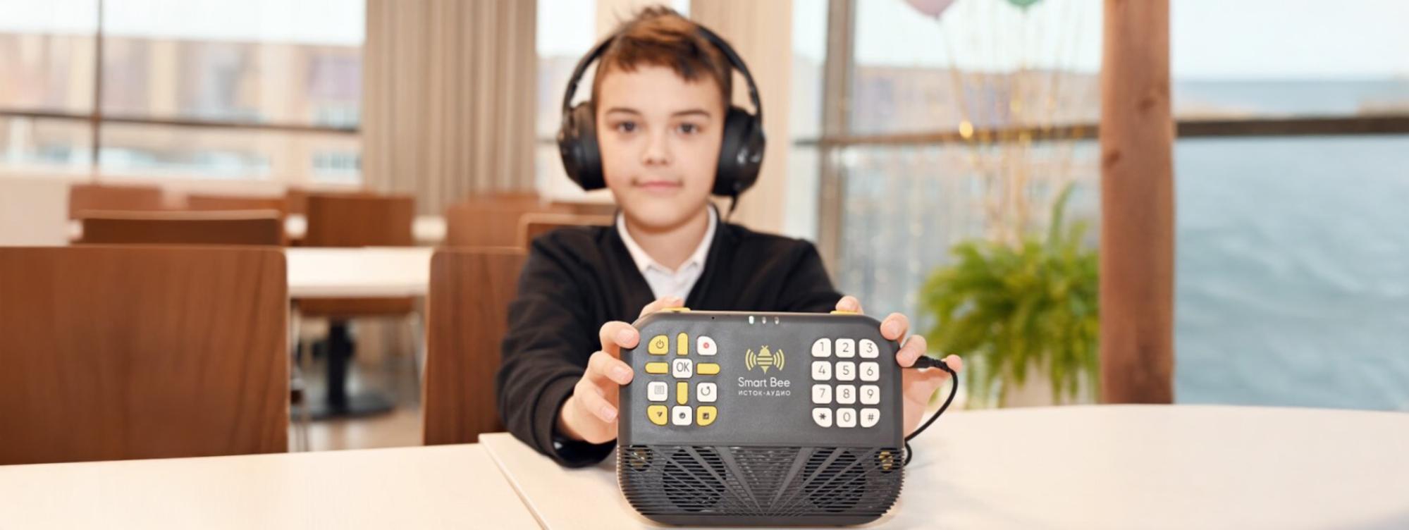 Тифлофлешплеер Smart Bee представила группа компаний «Исток-Аудио». С помощью девайса можно читать книги, слушать подкасты, новости и радио, пользоваться калькулятором и часами, проверять погоду.