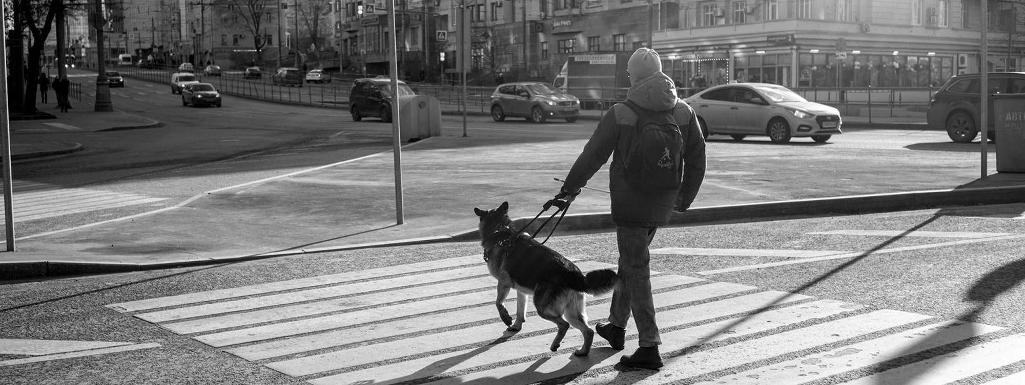 «До карантина они были частыми гостями библиотек северо-востока столицы, проводили встречи с читателями, рассказывая о собаках-поводырях и жизни незрячих. Теперь благодаря фотопроекту зрители смогут прогуляться вместе с ними по Москве и понять то, что нельзя увидеть глазами», — цитирует сайт префектуры СВАО кураторов проекта, рассказавших о Дмитрии и Паркере.