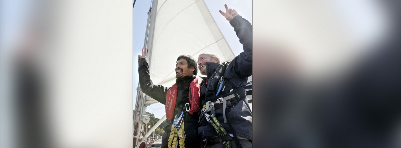 Ивамото родом из Японии, живет в США. Он потерял зрение в 16 лет. Благодаря путешествию через Тихий океан незрячий моряк и его штурман планируют собрать деньги для благотворительных фондов.
