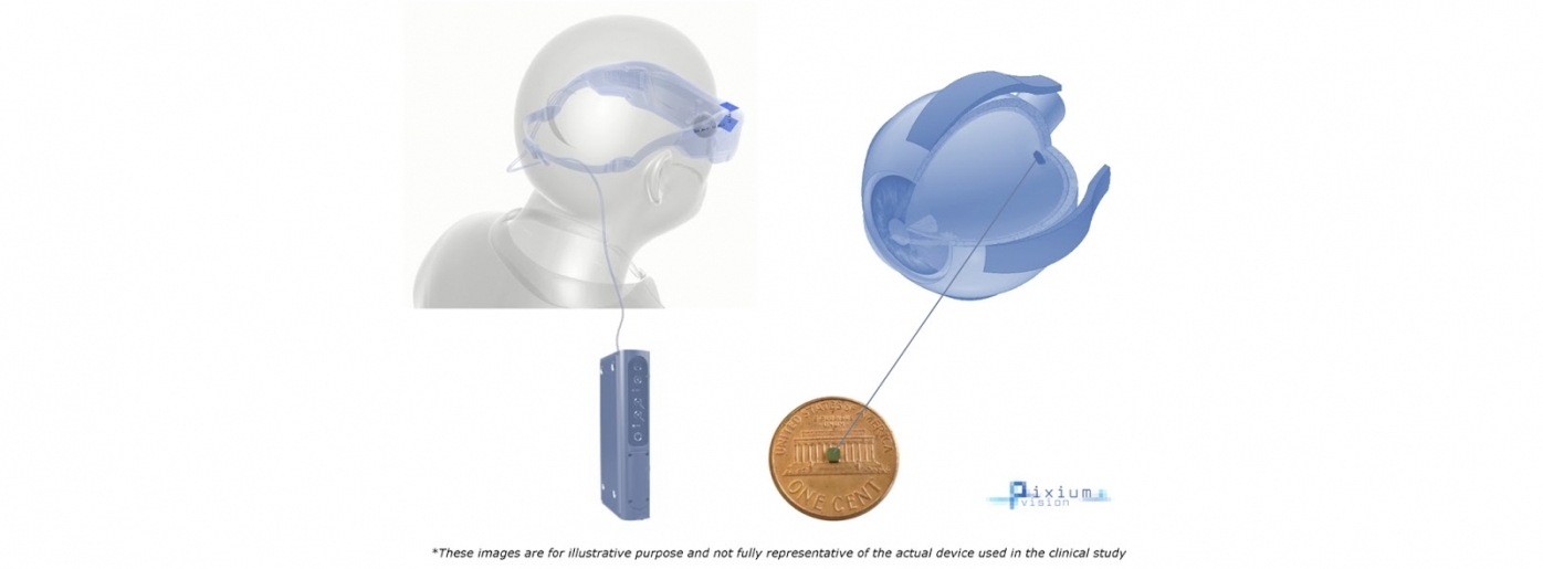 «Наша цель — преодолеть болезни, поражающие фоторецепторы — часть сетчатки, которая принимает свет и переводит его в сигнал для мозга. Идея в том, чтобы заменить функцию фоторецепторов электрической стимуляцией, используя имплантированный протез», — говорит Гильаум Бук, представитель Pixium Vision.