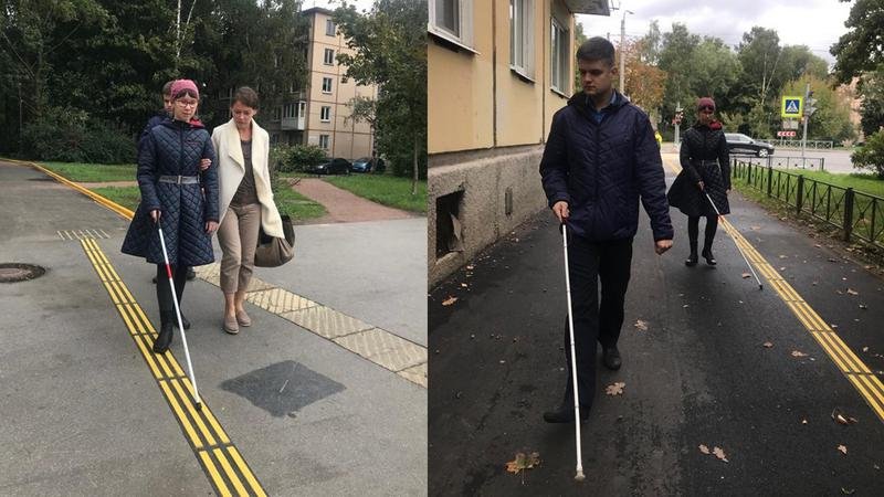 В Санкт-Петербурге обустроили первый уличный маршрут для незрячих и слабовидящих людей. Путь занимает около одного километра и пролегает от станции метро «Новочеркасская» до школы-интерната № 1 имени Грота, где учатся дети с нарушением зрения. Организаторы стремились выбирать наименее загруженные пешеходами места, в частности, в путь включили Таллинскую улицу.