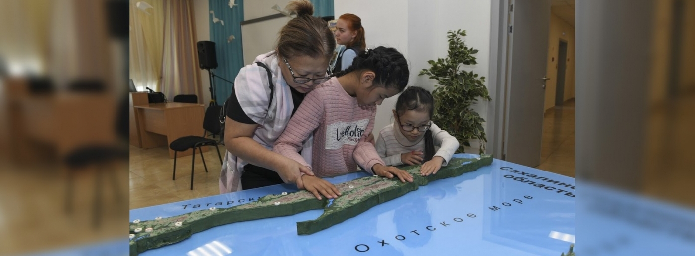 Проект «Осязаемый мир Сахалина» презентовали в Сахалинской областной библиотеке для слепых. Тактильный макет представляет собой полутораметровую карту с объемным изображением Сахалина и островов Курильской гряды, изготовленную в стенах библиотеки с помощью 3D-принтера.