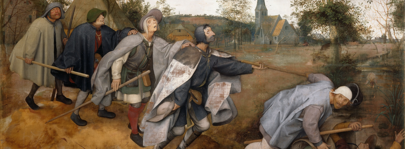 Идею нового спектакля Туфан Имамутдинов описывает так: «У Брейгеля очень явственно звучит мотив апокалипсиса, при этом визуальные образы в его работах не так гипертрофированы, как, например, в живописи Босха. Полотна Босха перенаселены выразительно-корявыми, изуродованными телами и лицами, Брейгель же как будто пишет такие „мещанские“ идиллические пейзажи. Тем не менее именно его работы использует, например, Андрей Тарковский в своих фильмах. Скажем, изображение „Охотников на снегу“ очень важно для идейной композиции „Соляриса“. В чем смысл? Дело в том, что в Голландии реки никогда не замерзали, это нонсенс. Поэтому тот идиллически-радостный мир, который изображает Брейгель, на самом деле далек от нормы. Так и в современном мире — мы знаем обо всех проблемах, они очевидны, но почему-то продолжаем разрушать экологию, экономику, человека. И все это происходит очень весело, по-брейгелевски. Вот эта тема меня волнует — слепые оказываются более зрячими, чем сами зрячие».