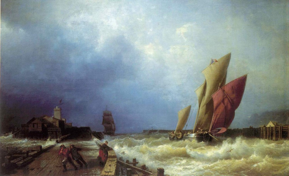 Алексей Боголюбов. Вход рыбачьего судна в бурю в гавань Сен-Валери. Ок. 1859